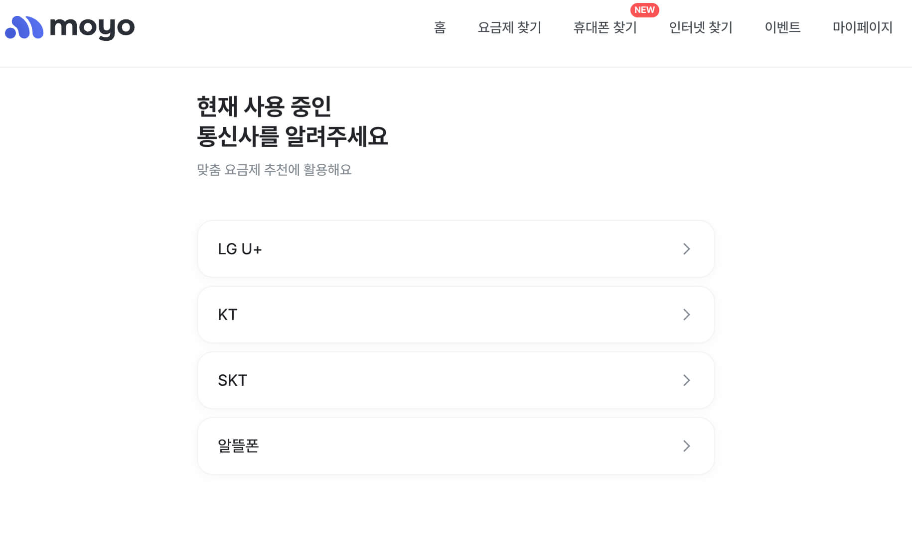 모요는 사용자 인터페이스가 뛰어나고, 실시간 인기 요금제를 한눈에 볼 수 있다는 점이 큰 장점입니다. 원하는 조건을 선택하면 조건에 맞는 요금제만 보기 좋게 정리되며, 모바일 환경에서도 최적화되어 있어 사용이 간편합니다.